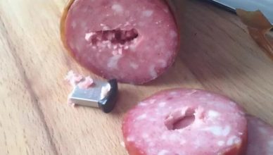 Když nůž narazil na odpor, myslela jsem si, že klobása je prostě zmrzlá. Studená kuchyně, šedivé ráno, líné světlo z okna. Všechno bylo
