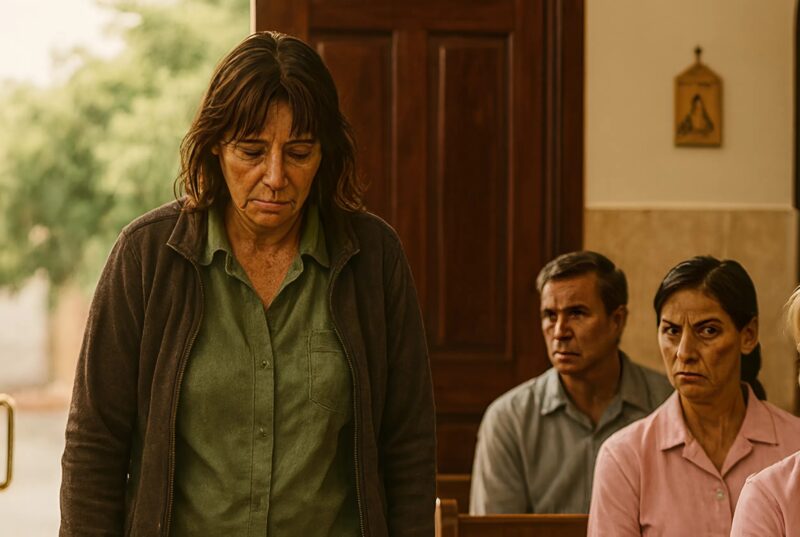 Shromáždění se otočilo. Jejich pohledy byly ostré a hodnotící. Někteří se zamračili, jiní nelibostně našpulili rty. Starší dáma v klobouku, sedící blíže k uličce, si rychle přitiskla tašku k sobě, jako by se bála, že se jí cizinec dotkne. Muž v tmavém obleku ustoupil stranou a uvolnil místo, ne aby uvolnil své místo, ale aby zdůraznil vzdálenost.