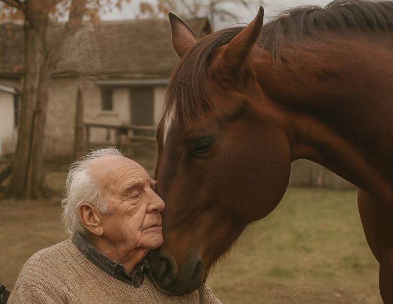 Kůň se pomalu vynořil, jako by chápal, proč ho sem přivedli. Jeho oči – inteligentní, unavené, jako oči muže, který prožil dlouhý život. Ztuhla, když spatřila svého pána. Stařec zvedl hlavu a poprvé po mnoha dnech se mu na tváři objevil slabý úsměv.