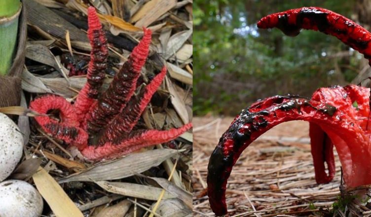 J’ai d’abord cherché « rouge visqueux, sentant la pourriture ».