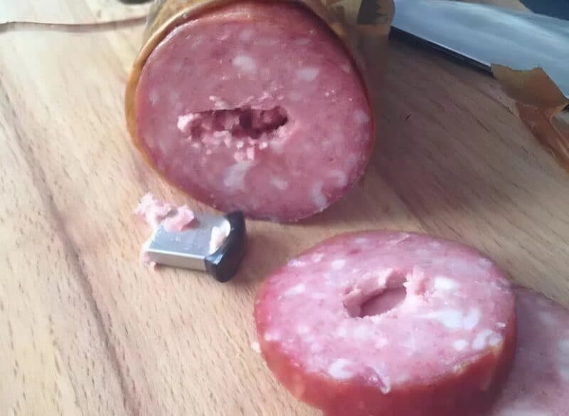 Když nůž narazil na odpor, myslela jsem si, že klobása je prostě zmrzlá. Studená kuchyně, šedivé ráno, líné světlo z okna. Všechno bylo obyčejné – dokud čepel nesklouzla po něčem tvrdém. Klik. A ticho, jako by samotný vzduch zadržoval dech. Podívala jsem se dolů a v růžové hmotě jsem uviděla kovový záblesk.
