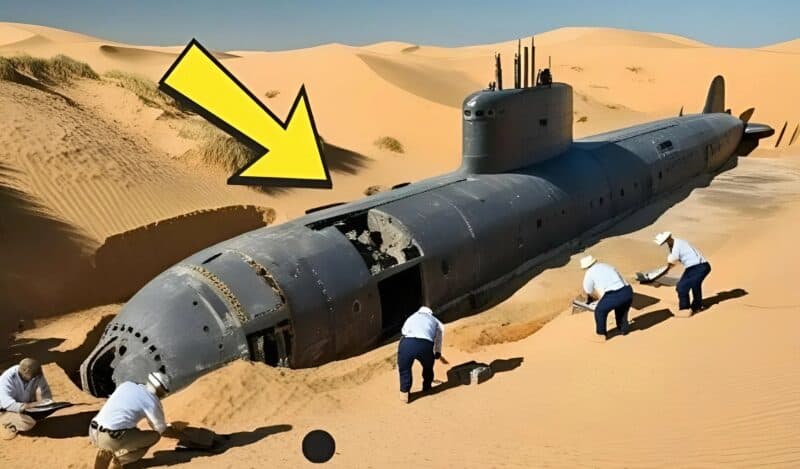Žár byl tak intenzivní, že písek praskal, jako by hořel zevnitř. Vrtulník zvedl oblak prachu a pod ním, uprostřed nekonečného oranžového moře, se vynořila silueta – kovová, mrtvá, ale nezlomená. Ponorka. Obrovská, se zrezivělým trupem a vyčnívajícím periskopem, jako by stále hledala moře ztracené někde stovky kilometrů daleko.