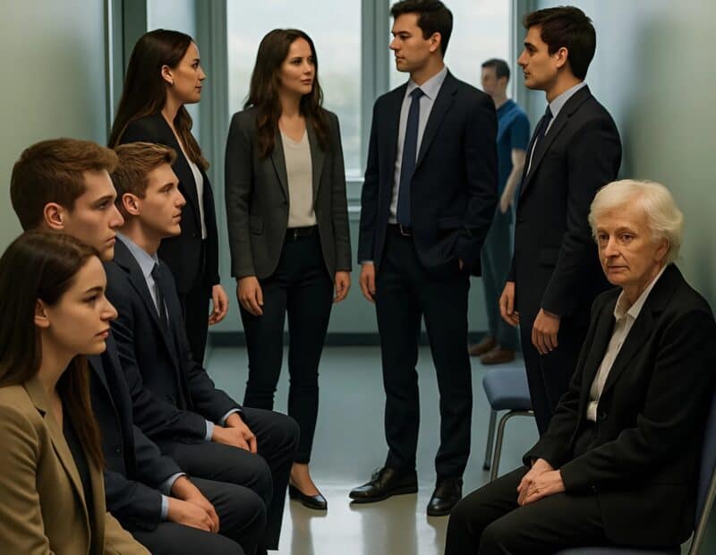 V místnosti bylo ticho, když se otevřely dveře a ona vešla, jako by z jiné doby. Její bílé vlasy byly stažené do pevného drdolu, měla na sobě formální černý oblek, koženou aktovku a obnošené boty. Všude kolem ní byly mladé tváře, chytré telefony a sebevědomé úsměvy. Někdo zvedl obočí, někdo se zasmál. Jen letmo pohlédla na ceduli s nápisem „Pohovor. Backend vývojář“ a klidně se posadila ke zdi.