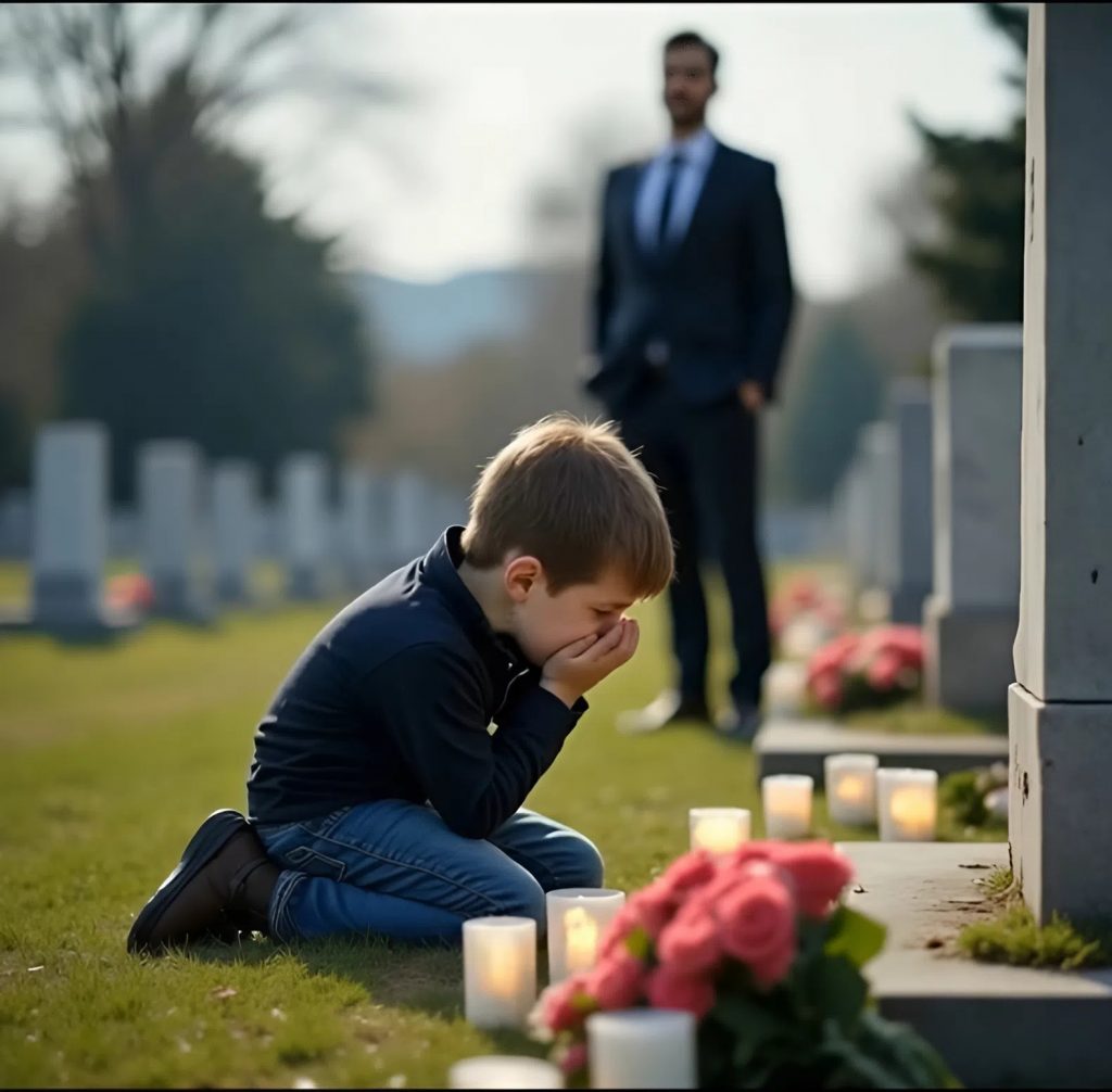 Une fine pluie glisse sur les dalles de marbre et le silence enveloppe les tombes comme un voile. Au fond de l’allée, parmi la terre encore sombre et humide, un petit garçon — sept ans tout au plus — est agenouillé devant une pierre tombale. Sa vieille veste est trempée, ses joues rougies par les larmes. Il étreint la stèle froide, comme s’il essayait de serrer sa mère une dernière fois.