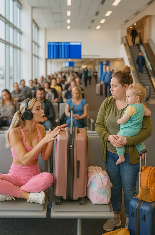 La mère, assise avec son enfant, restait calme. Elle ne cherchait ni confrontation ni excuses — seulement un moment de répit. Dans son regard, il n’y avait pas de colère, seulement une fatigue accablante, celle qui s’abat sur les voyageurs après une nuit blanche et des heures debout.