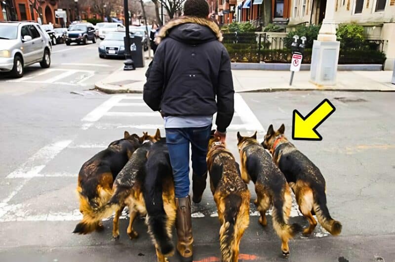 People on the block barely reacted anymore. To them, it was a familiar sight: a quiet man leading a perfectly disciplined line of dogs that moved like a single organism. No tugging, no barking, not even a sideways glance.