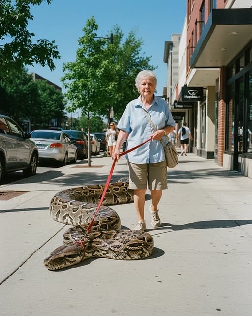 — « Il m’a sauvé la vie. » Un silence brutal est tombé. Les policiers se sont regardés, déstabilisés. Les passants, qui filmaient encore quelques secondes plus tôt avec des rires nerveux, ont cessé de parler. Même le gigantesque python semblait immobile, comme suspendu à cette phrase. La femme avait soixante-dix ans. Elle s’appelait Vera. Une retraitée ordinaire : manteau sombre, démarche lente, regard fatigué mais lucide. À son bras, une laisse. Au bout de cette laisse, un python de près de cinq mètres, massif, puissant, nommé Hector. Pas un spectacle. Pas une provocation. Une présence.