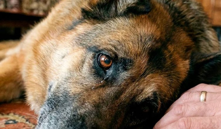 Ovčačka se pokusila vstát. Nešlo to. Ale zvedla hlavu. Ocas se pohnul.