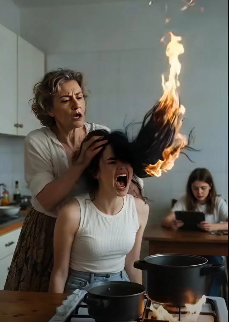 Puis elle m’a attrapée par les cheveux et m’a poussée la tête vers la flamme du gaz allumé.