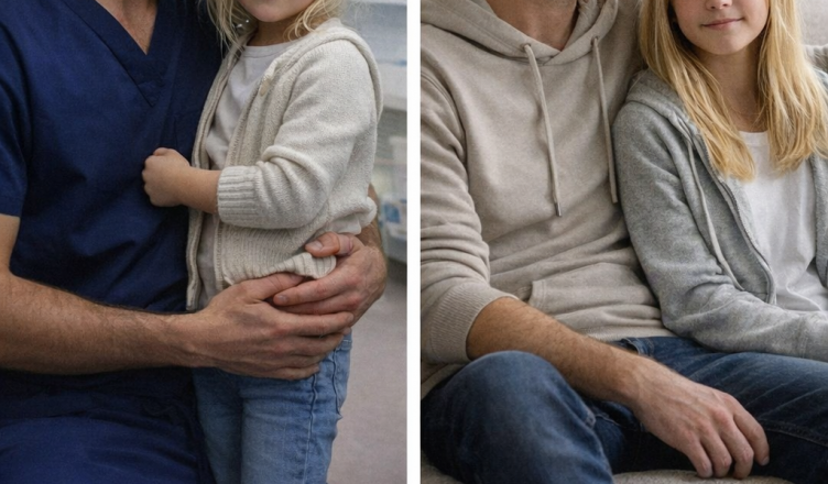 Díval jsem se na svou dceru a najednou jsem viděl všechno najednou — nemocniční chodbu, jablečný džus, pohádkovou knížku čtenou třikrát za sebou. Její první „tati“ u mrazáku, když se snažila dosáhnout na zmrzlinu. Vysvědčení. Horečky. Noční můry.