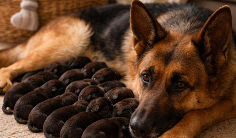La chienne, épuisée, tenta pourtant de se redresser. Un grognement faible sortit de sa gorge quand une main s’approcha des petits. Ce n’était pas de la menace. C’était l’instinct d’une mère prête à mourir pour protéger.