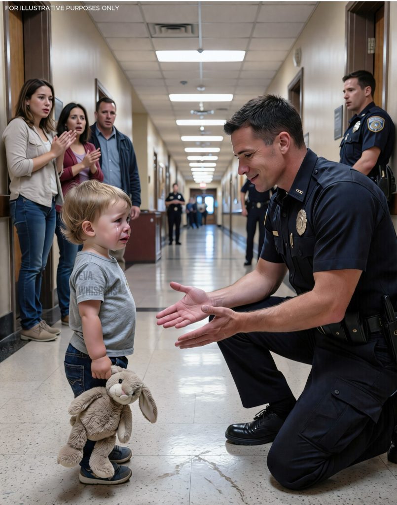 Quelques minutes plus tard, le lieutenant Harper sortit du couloir. Un homme d’une quarantaine d’années, au regard calme. Au lieu de rester debout, il s’agenouilla pour être à la hauteur de l’enfant.