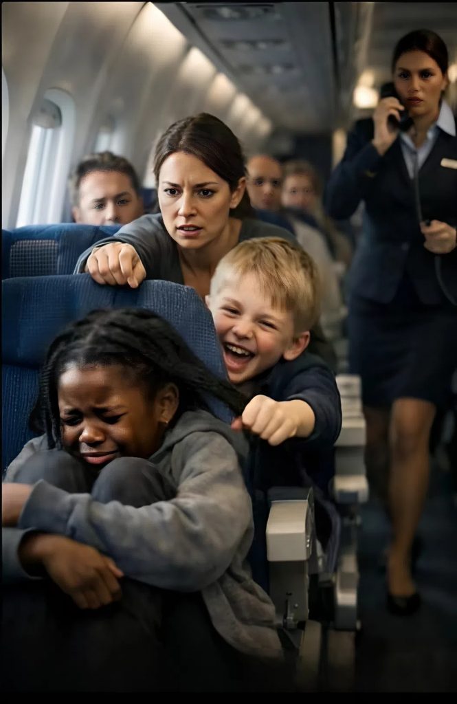 La petite fille, qui quelques minutes plus tôt se sentait humiliée et seule à dix mille mètres d’altitude, regardait maintenant autour d’elle avec étonnement.