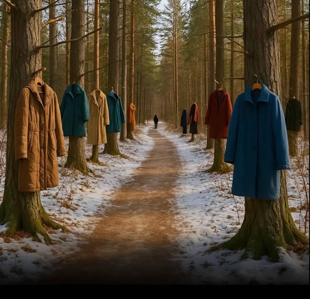 En quelques jours, les branches des arbres étaient couvertes de couleurs : rouge, bleu, gris, noir. Comme si la forêt s’était transformée en refuge silencieux pour les personnes les plus vulnérables.