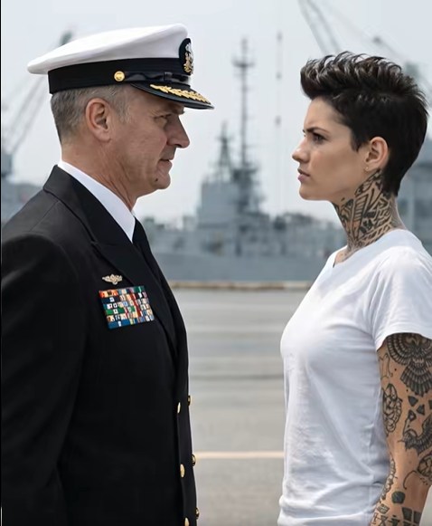 Elle ne portait pas l’uniforme classique. Juste un simple t-shirt blanc sous une veste de pilote. Sur sa poitrine brillait calmement l’insigne des forces aériennes. Elle marchait avec une tranquillité presque dérangeante, comme si la tension autour d’elle ne l’atteignait pas.