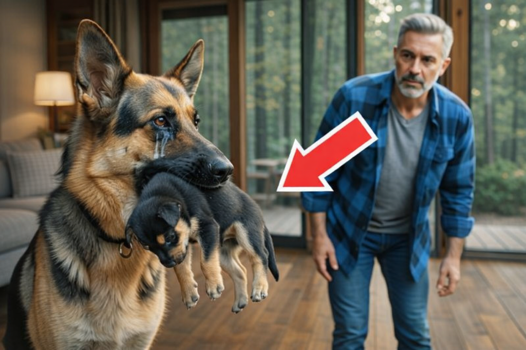Sur le seuil se tenait une femelle berger allemand, épuisée, couverte de boue et de sang.