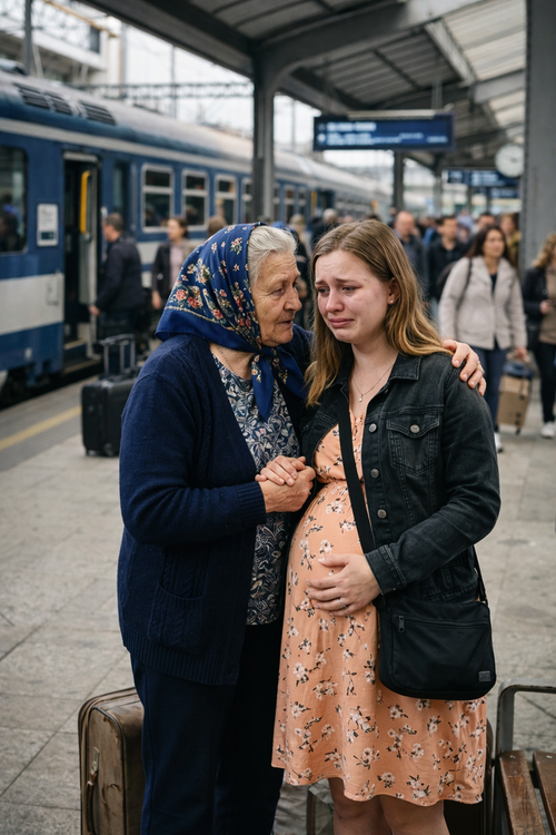Une jeune femme enceinte a été mise à la porte quelques jours avant son accouchement — et elle survit désormais sur une chaise en plastique froide, au milieu d’inconnus et du bruit incessant des trains.