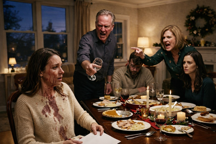 V obýváku, kde se ještě před chvílí krájela krůta, jí otec chrstl do obličeje červené víno, matka vykřikla „Vypadni!“ a bratr se ani nepohnul. Všechno se to odehrálo v domě v Idaho Falls — a šok nebyl jen v částce dluhu, ale v tom, že to celé bylo předem připravené.Krabice ležela na stole jako symbol smíření. Zlatý papír, pečlivě uvázaná stuha — skoro dětská naděje na něco upřímného. Jenže uvnitř nebyl žádný dárek. Byl tam bankovní dokument na 250 000 dolarů se jménem jejího bratra a poznámkou „po splatnosti“.