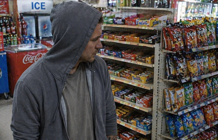 Les faits se déroulent en plein après-midi, dans une petite épicerie presque vide. Vers 14 heures, un individu à l’allure inquiétante franchit la porte. Capuche grise tirée bas sur le visage, bras couverts de tatouages, regard lourd et calculateur. Tout, chez lui, inspire la méfiance.Il avance lentement entre les rayons, feignant de chercher quelque chose. Mais très vite, son attention est attirée par une scène inhabituelle derrière le comptoir.