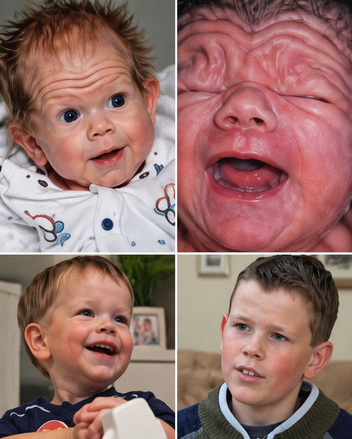 Ce qui provoquait autrefois la peur et le choc disparaît peu à peu. Les traits de son visage deviennent ordinaires. Sa peau ressemble de plus en plus à celle des autres enfants.