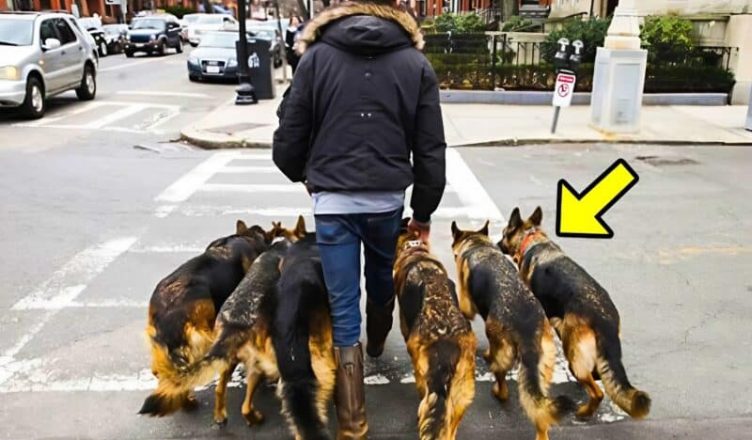 Every morning at exactly the same minute, he turned the corner with five German Shepherds at his side.