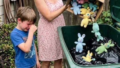 Krabice se stovkou ručně vyrobených hraček skončila v odpadkovém koši přímo před očima dítěte — a v tu chvíli se v té rodině něco nenávratně zlomilo.