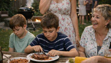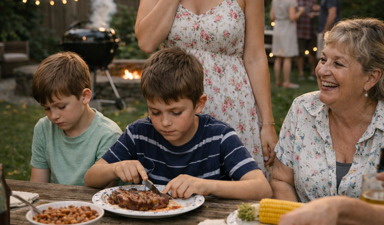 Un simple morceau de viande brûlé a révélé quelque chose de bien plus grave — un enfant de huit ans a accepté l’humiliation comme si c’était normal, devant toute sa famille.