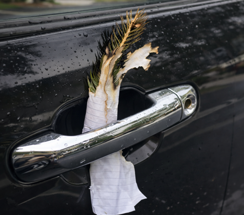 Une branche brûlée coincée dans la poignée d’une voiture a suffi pour déclencher une peur immédiate et des questions auxquelles personne ne veut vraiment répondre.