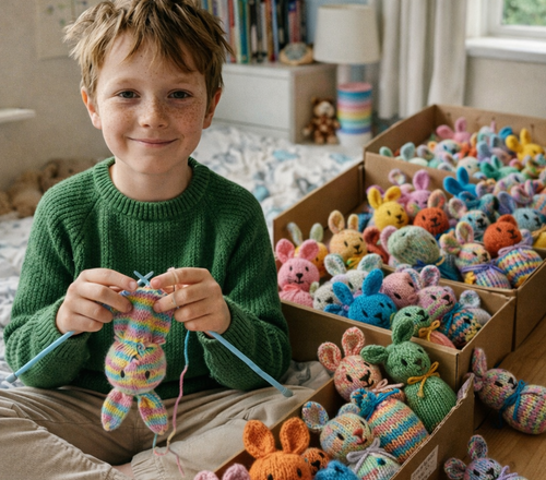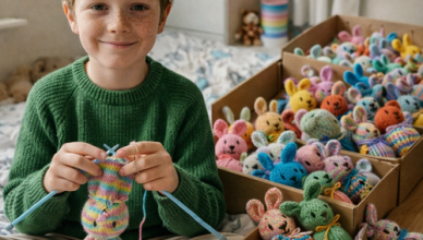 Krabice se stovkou pletených zajíčků zmizela v popelnici během několika vteřin — a v tu chvíli devítiletý chlapec jako by znovu přišel o matku, přímo uprostřed vlastního domova.