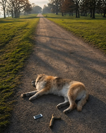Trois motos freinent brusquement devant une jeune femme dans un parc presque désert.